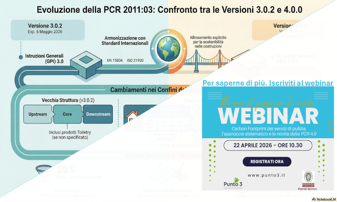 Dall’impatto sui CAM 2021 alle nuove regole per l’LCA: Punto3 analizza le novità introdotte dalla PCR 2011:03 versione 4.0 per i servizi di pulizia professionali.
