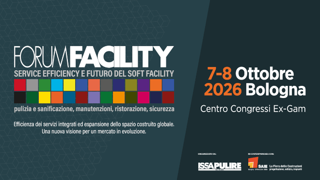 ISSA Pulire Network s.r.l. annuncia ufficialmente la prossima edizione di Forum Facility, in programma il 7 e 8 ottobre 2026 presso l’EX-GAM del Bologna Congress Center, in contemporanea con SAIE – La Fiera delle Costruzioni: progettazione, edilizia, impianti, in programma dal 7 al 10 ottobre 2026 e che avrà luogo nei padiglioni di Bologna Fiere.